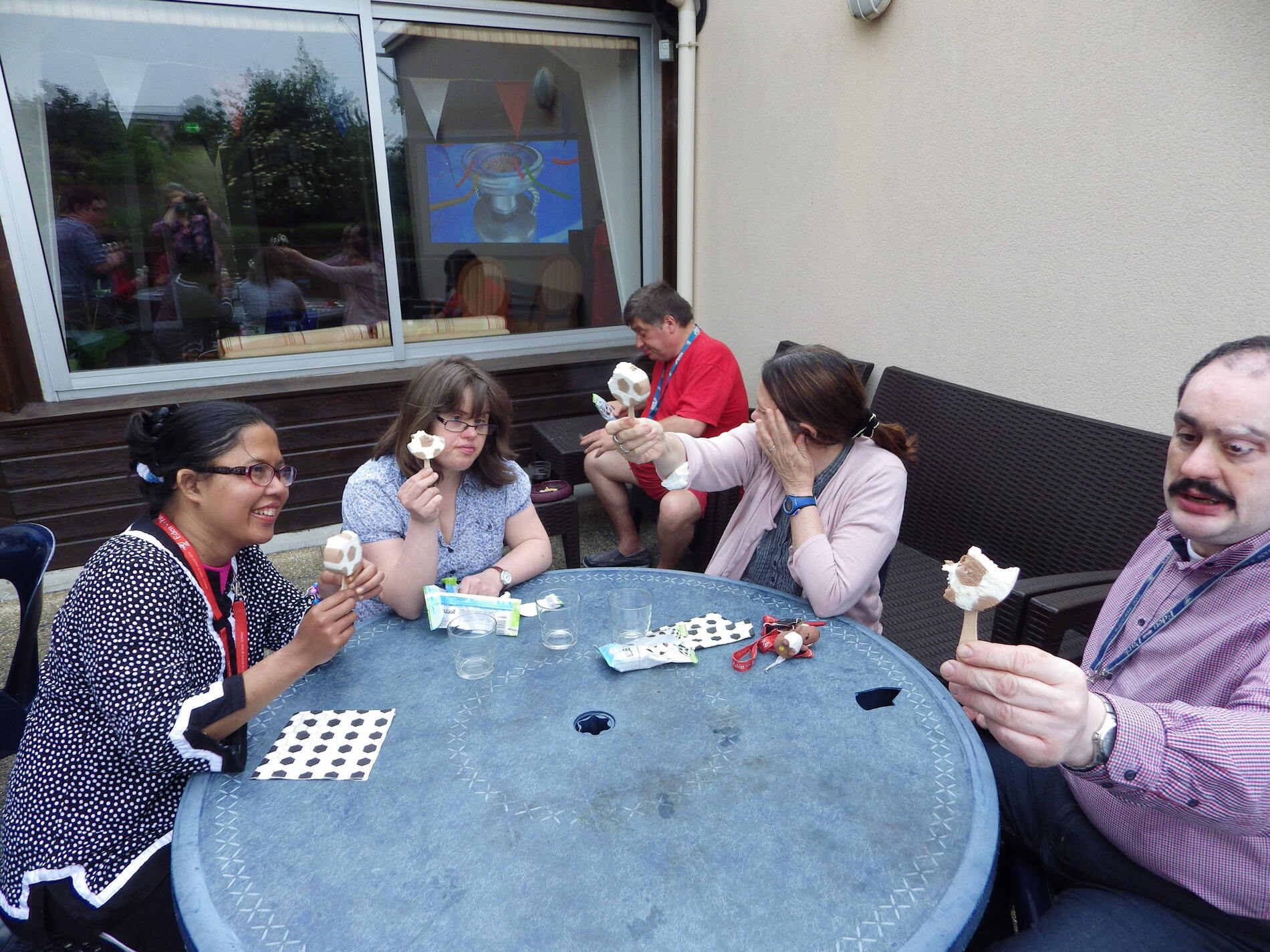 Les matchs de la France ont été projetés sur grand écran pour le plus grand plaisir des amateurs de foot. Les personnes accompagnées par le SAVS de Châtenay Malabry se sont joints à la Maison Heureuse. Au menu Pizza et glaces comme il se doit.