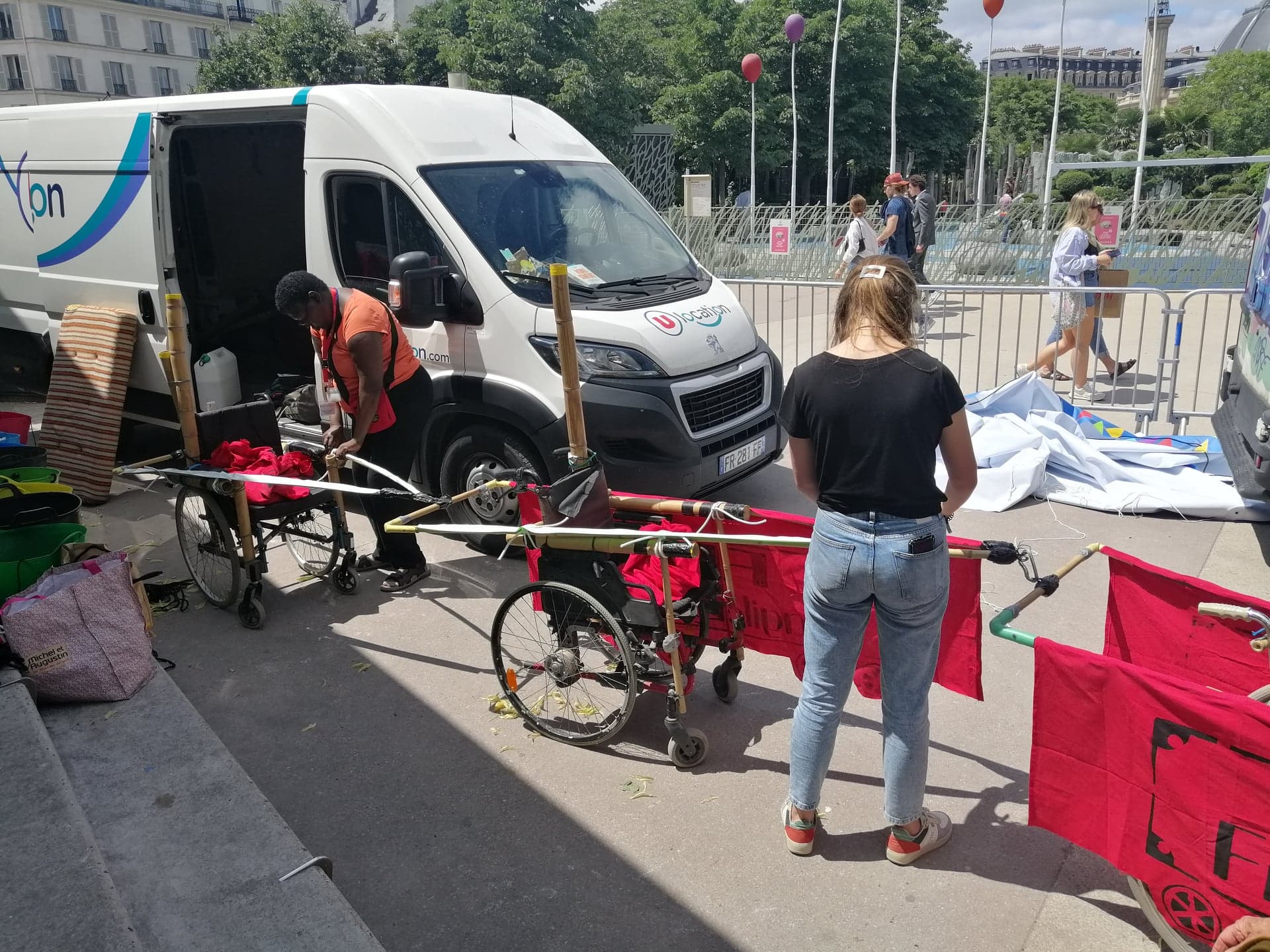 Lors de l’installation, le vendredi, trois résidents de la MAS Les Deux Marronniers et deux résidentes du SAVS/SAMSAH La Planchette ont aidé au montage et à l’agencement des stands de l’évènement.