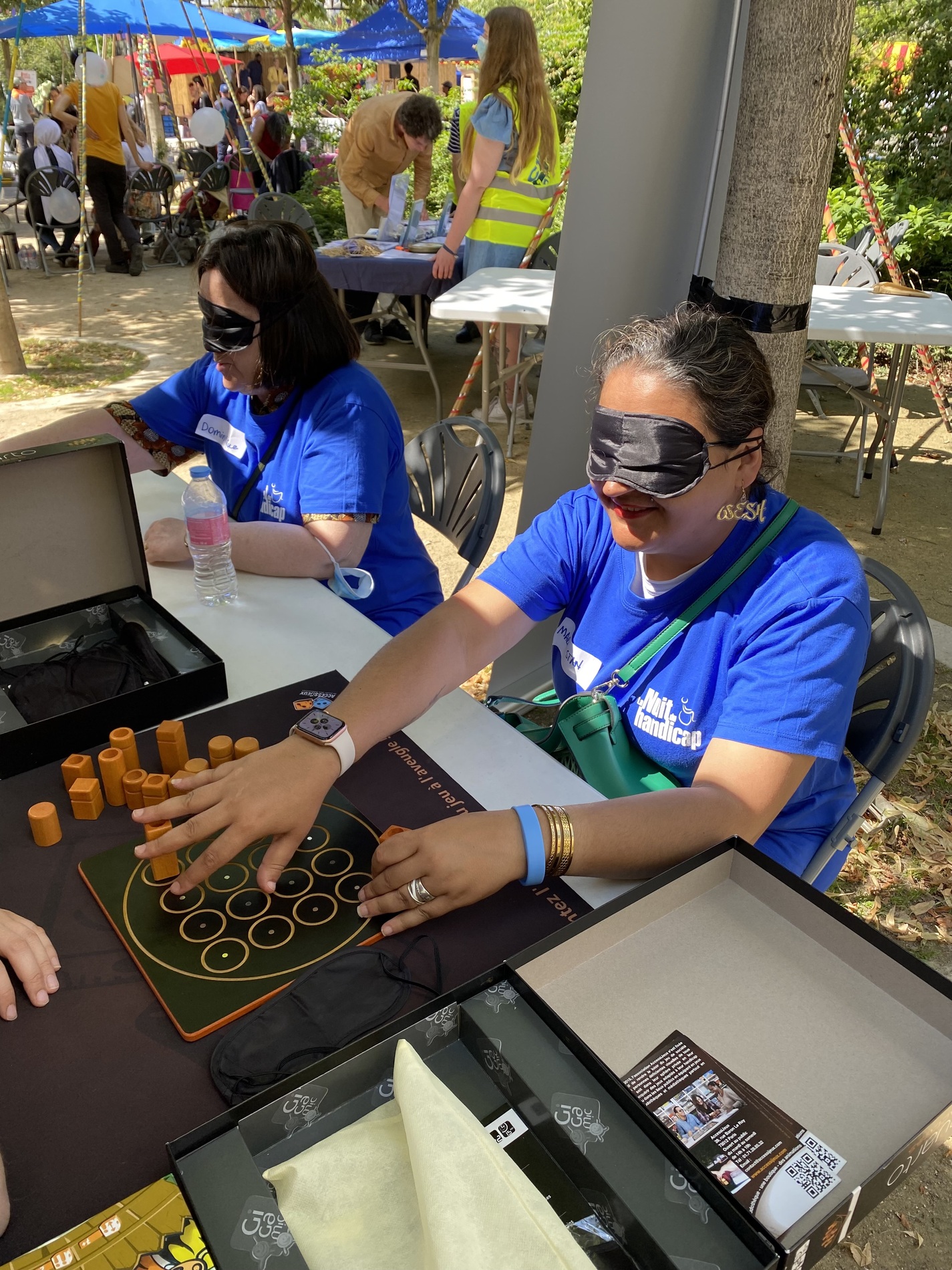 Le jour J, trois usagers volontaires, accompagnés de l’animatrice et de l’éducatrice spécialisée du SAVS/SAMSAH La Planchette, ont accueilli les visiteurs et récolté des dons du grand public. Pour deux d’entre eux, c’était d’ailleurs leur première action de bénévolat. À la fin de leur mission, ils ont pu participer à certains ateliers de la Nuit du handicap comme une animation « cécijeux » qui propose de découvrir des jeux avec les yeux bandés pour se mettre dans la situation d’une personne avec une déficience visuelle.